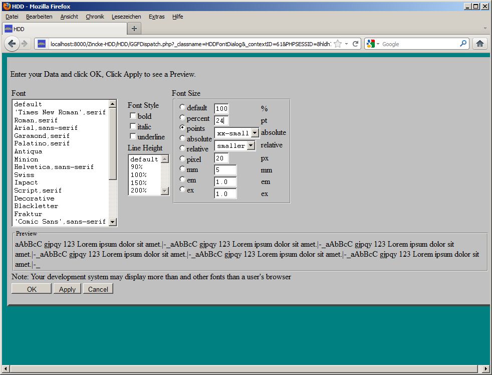 The ReinHTML Dialog Designer is a web-based interactive tool to design and generate web pages for interactive dialogs, HTML forms and windows in web applications. Look into the Tutorial to see how it works. The target audience are developers who want to create interactive web-applications using PHP or other programming languages. The tool delivers structured HTML code (in future server-side PHP source code too) that can be included into your own applications. Enhancements like Javascript, Adobe Flash ® or Microsoft Silverlight ® are not required. So many problems with browser compatibility and potential security holes are avoided.