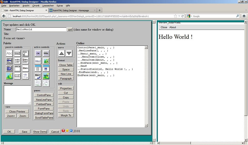 The ReinHTML Dialog Designer is no PC-based tool to develop home pages. It concentrates on design of functional HTML forms and does not claim to be a universal tool for general web design tu utilize all graphical features of HTML. Graphical designers do not belong to the target audience of the ReinHTML Dialog Designer.